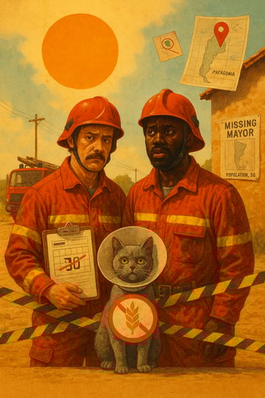 Pour Dyonis et Mansa, deux pompiers au passé trouble, ce qui devait être le simple sauvetage du chat paranoïaque et allergique au gluten de Mme Bérange se transforme en thriller burlesque au fin fond du Périgord… Ils se retrouvent pris dans des conflits géopolitiques, la disparition d'un maire-imam, une rave party lors du nouvel an Mapuche et des soupçons qui enflent concernant les tenanciers d'un kebab après un incendie.